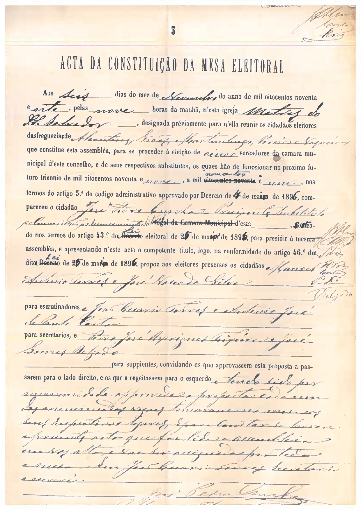 Recordamos que, à época, a Constituição monárquica limitava o direito de voto aos homens, maiores de 25 anos, com uma renda líquida anual de oitenta mil réis, excluindo menores de 25 anos [salvo quando estes tivessem mais de 21 anos e fossem a) casados, b) bacharéis formados, c) oficiais do Exército ou da Armada ou d) clérigos de ordens sacras], criados de servir, os libertos (ex-escravos), os pronunciados pelo júri (considerados culpados de algum crime) e os falidos que não houvessem conseguido provar a sua boa fé. Efetivamente, as condições exigidas para integrar o corpo eleitoral e para ser elegível a cargos administrativos foram variando ao longo dos tempos, podendo incluir critérios como profissão, saber ler e escrever, habilitações literárias, contribuições pagas, entre outros.
