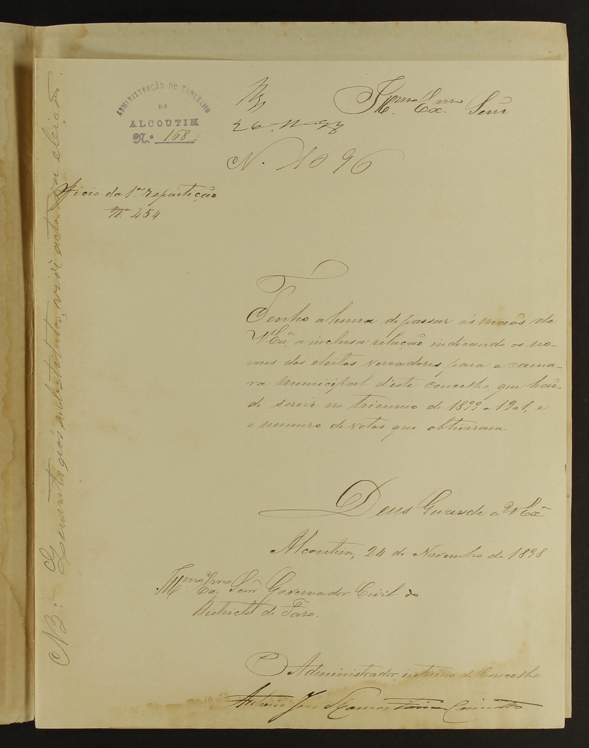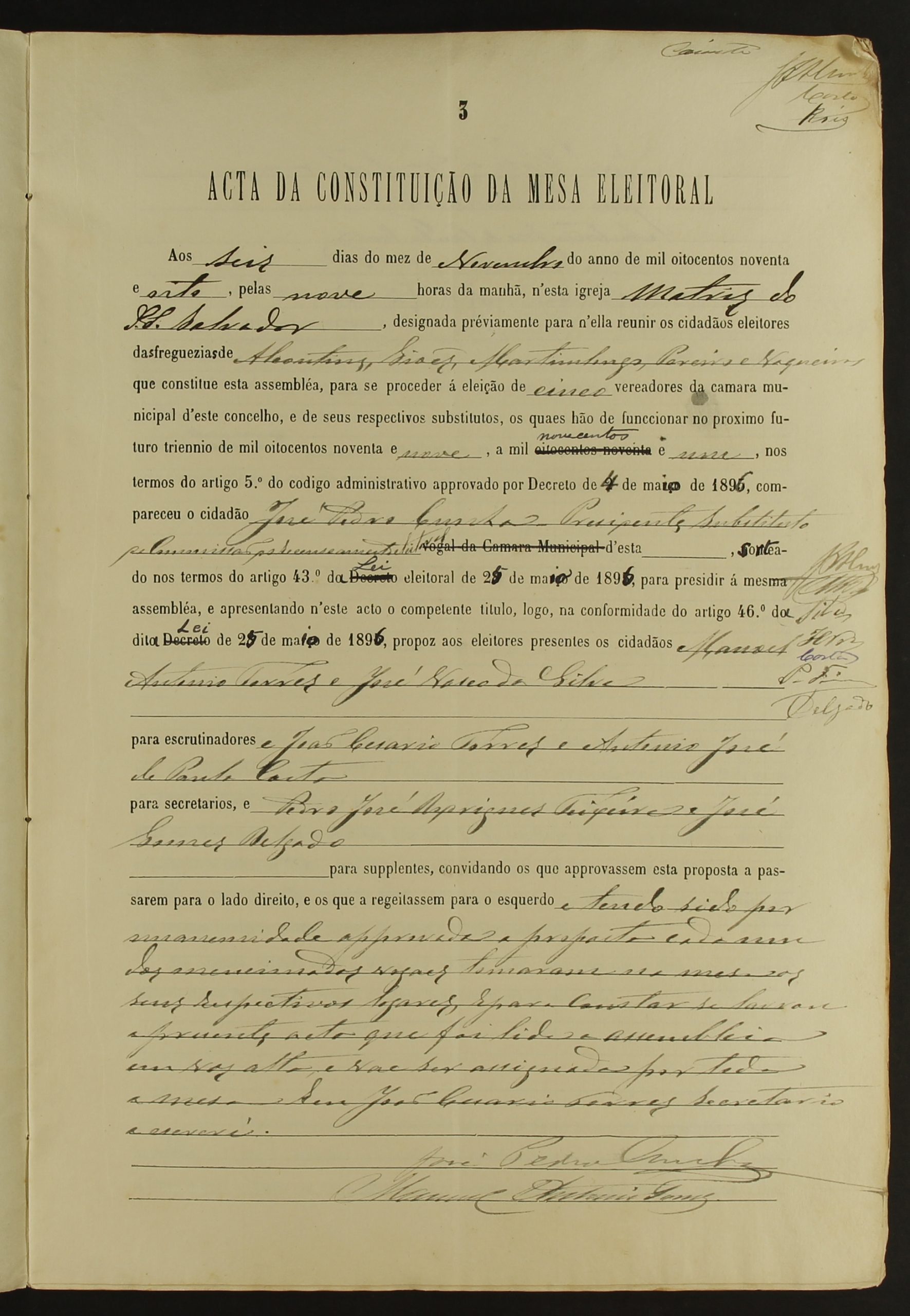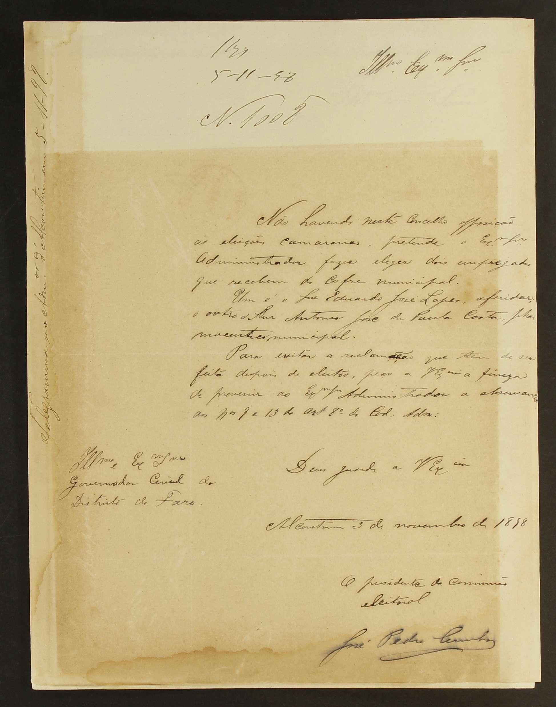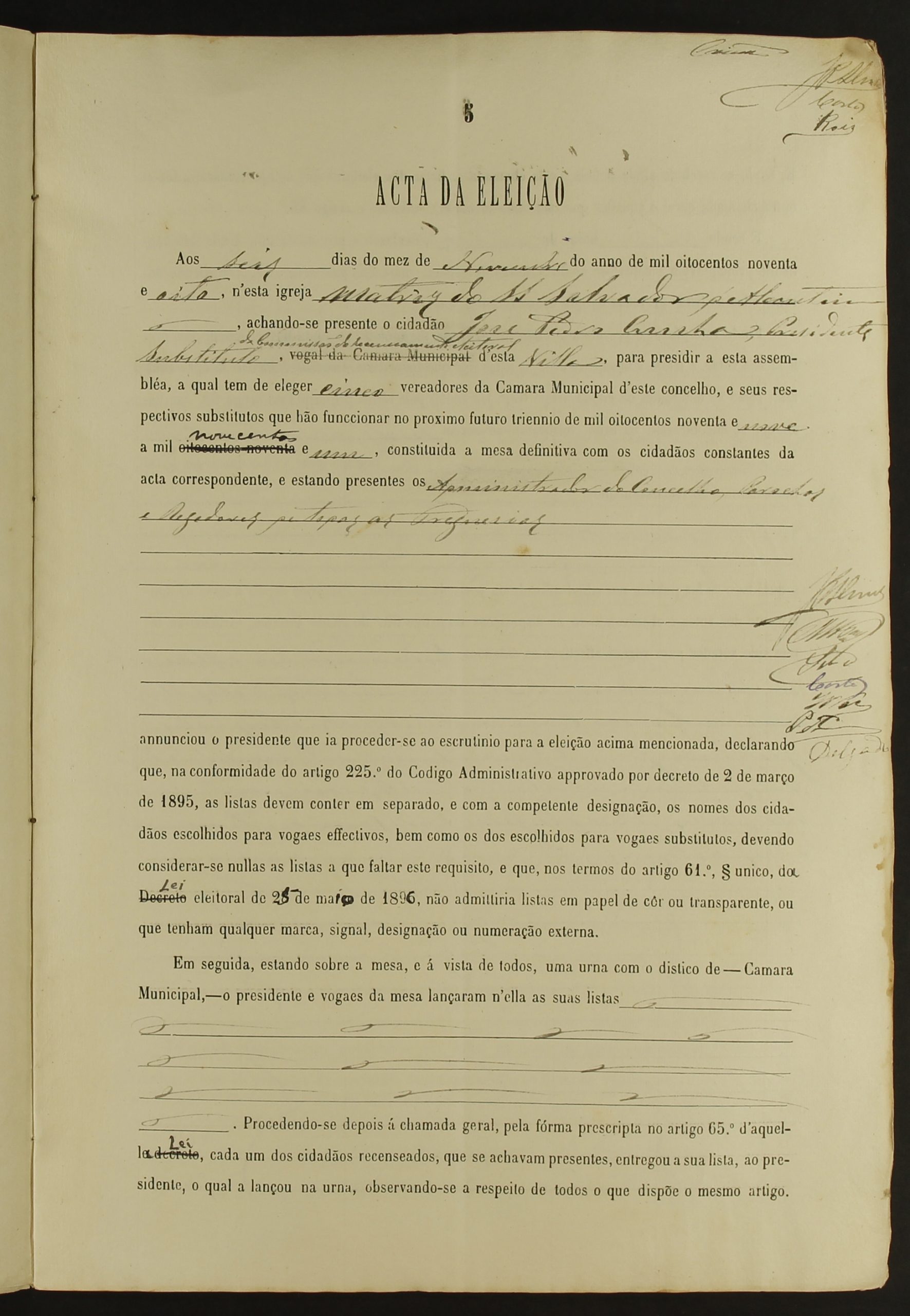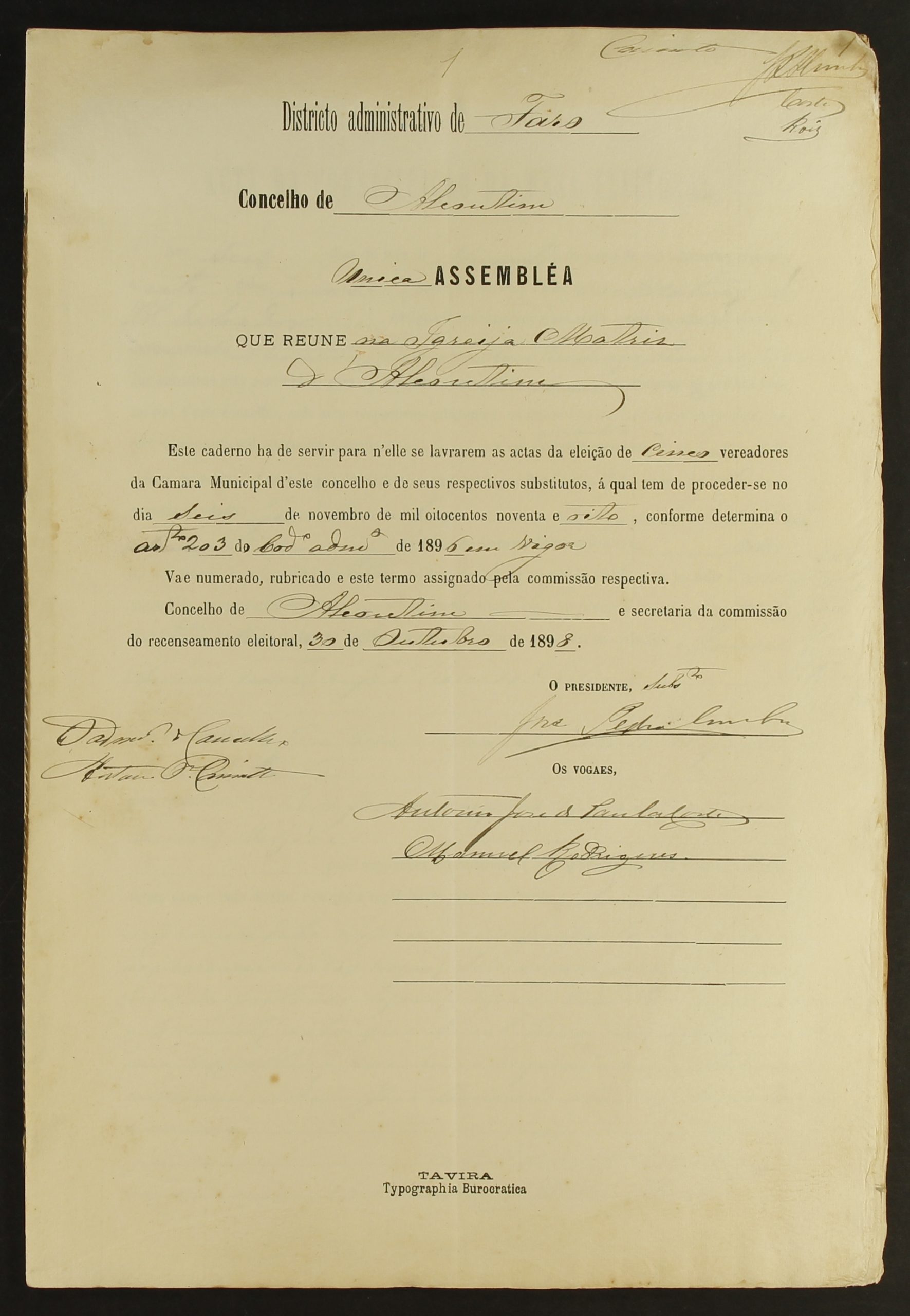 No Fundo do Governo Civil do Distrito de Faro foi localizado o documento que serviu de base à eleição de cinco vereadores para as eleições camarárias do triénio 1899-1901 da Câmara Municipal de Alcoutim.