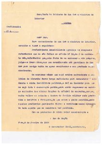 Ofício enviado pelo Governador Civil de Faro ao Chefe de Gabinete do Ministro do Interior